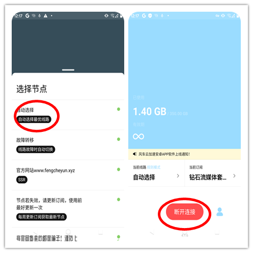 如果觉得前面提供的节点速度慢,或者是节点不能正常使用了,则需要购买正式套餐。 ### 速度飞快不卡顿节点[点击购买]: ### https://www.fengcheyun.net/ > 节点网站是我们从网上搜集的速度快稳定的,只做推荐使用,有任何节点问题请直接联系网站客服。 我们会持续为大家搜集,速度更快更稳定的节点。 再次提醒:禁止使用节点进行任何违反法律的操作,因此操作产生的法律纠纷本店概不负责! ## ==方法一== ## 1、复制下面这个网址到浏览器中打开 ### https://www.fengcheyun.net/ ## 2、注册登录  ## 3、如何使用节点 ## ==下载风车云用户独立APP== ## 👉 [点我下载风车云加速APP](https://app.fengcheyun.cc/anzhuo/fengcheV4.1.6.apk)👈 便捷,傻瓜式的下载风车云APP一键启动链接 #### [风车云加速APP备用下载链接](https://app.fengcheyun.cc/anzhuo/fengcheV4.1.6.apk) ## 打开风车云APP,登录你在风车云官网注册的账号,点击当前订阅,选择适合自己的套餐购买!  ### 订阅套餐购买完成后,左侧线路选择:自动选择  ### 点击连接,即可使用 ### ==为防止流量消耗,不使用的时候请把连接断开== 界面模式解答 全局模式:使设备全部app处于连接代理翻墙的状态(不建议使用) 规则模式:系统根据软件是否使用代理而开启翻墙状态(推荐使用) ## [返回首页](https://www.fengche666.com/p/douyin01/"返回首页")